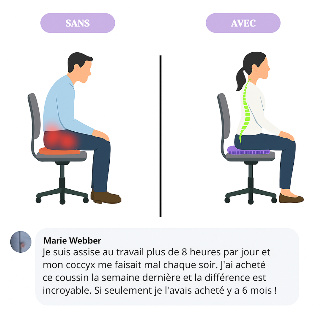 Soulage les douleurs dues à de longues heures assises. Aligne votre dos et vos muscles.